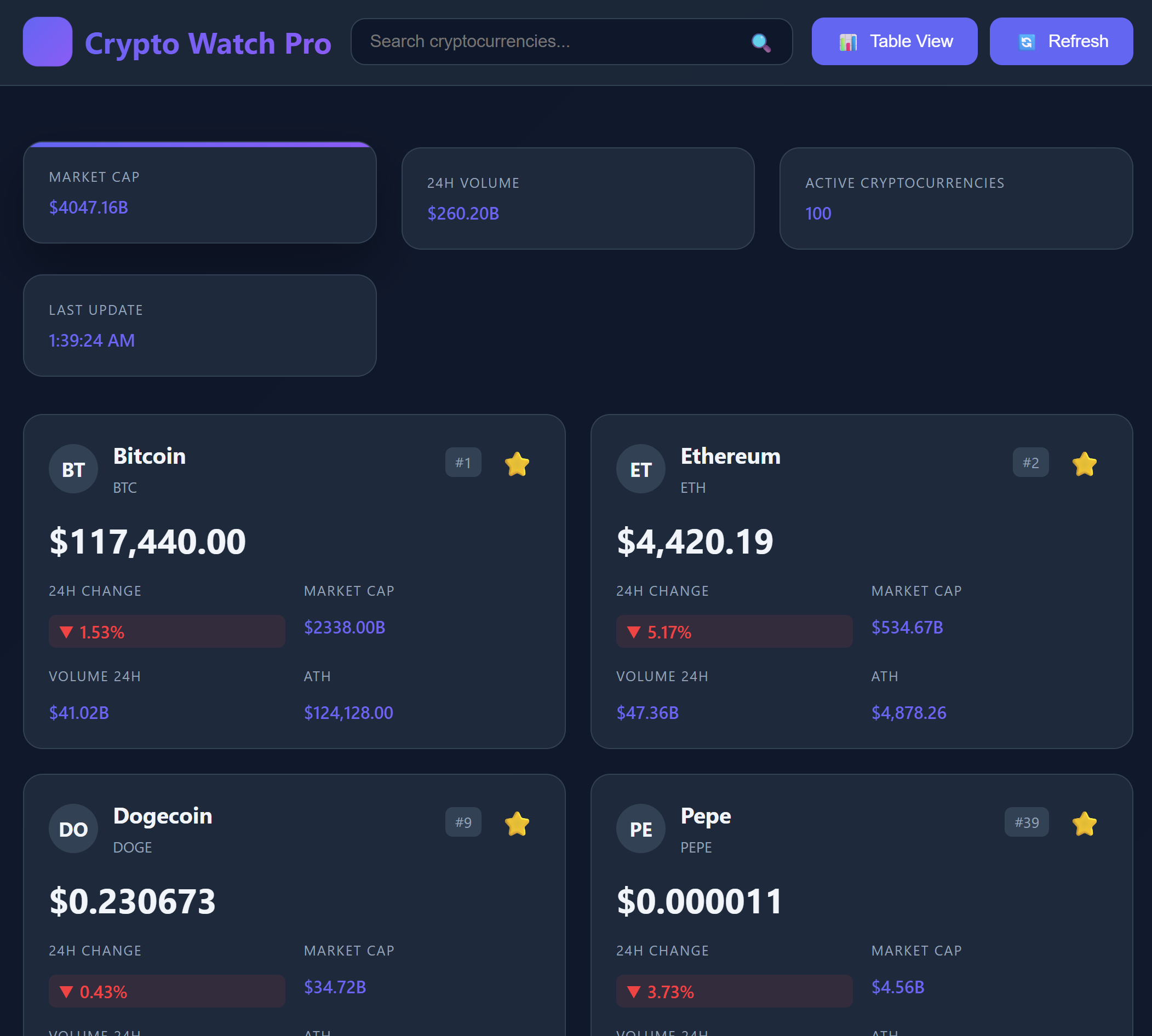 Track the crypto market like a pro with this sleek, real-time cryptocurrency monitoring dashboard!