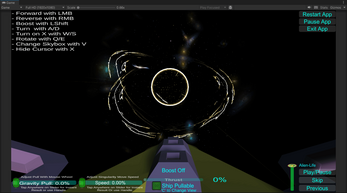 Yeah basically lol. I always wanted to try to make a black hole for whatever reason and so this is my first attempt. If the ship touches the core collider it will also teleport the ship randomly at least 2,000 units. I'm going to increase the units. Or maybe make it teleport into another scene where the solar system actually is with like a Milky Way background which I actually have the assets for... I've gotten all kinds of different reactions from the big balls. Increasing the speed instantly from the toggle differently has an effect and then incrementally increasing is definitely a bit different. If you release the ship at a high gravity pool it likely gets thrown out of bounds and extremely shaky and no way to get back...
